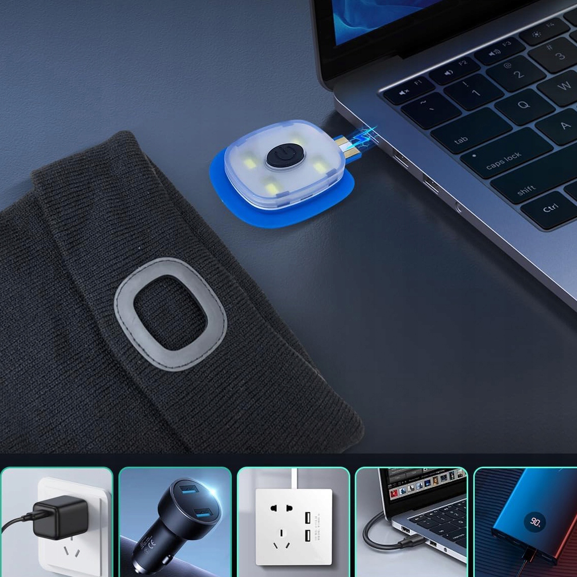 Korzystanie z czapki z lampką może zwiększyć bezpieczeństwo podczas nocnych spacerów lub biegania, zwiększając widoczność i pozwalając innym zobaczyć użytkownika. Jej żółty neonowy kolor jest widoczny z daleka!