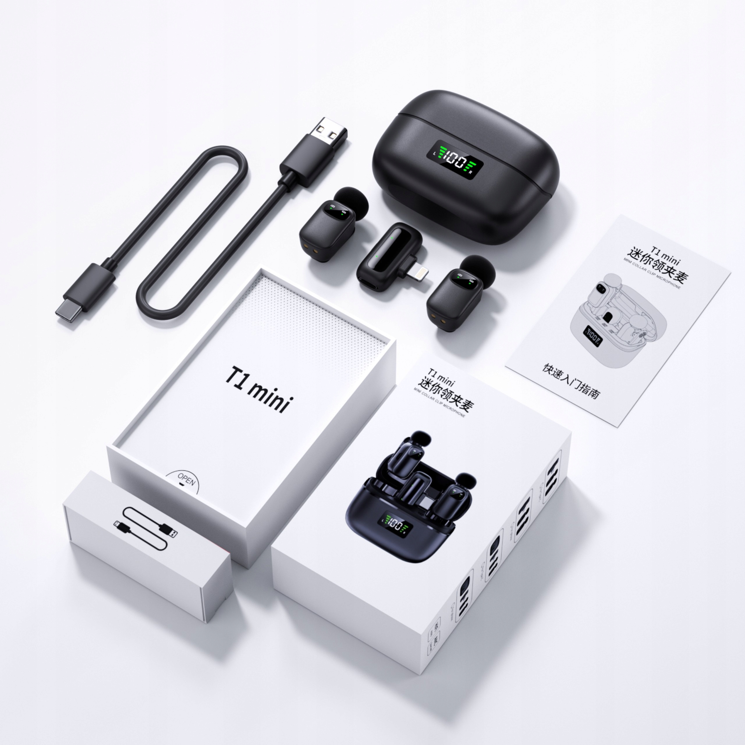 - 2x mini mikrofon bezprzewodowy T1 mini (clip-on) z pianką na kapsule