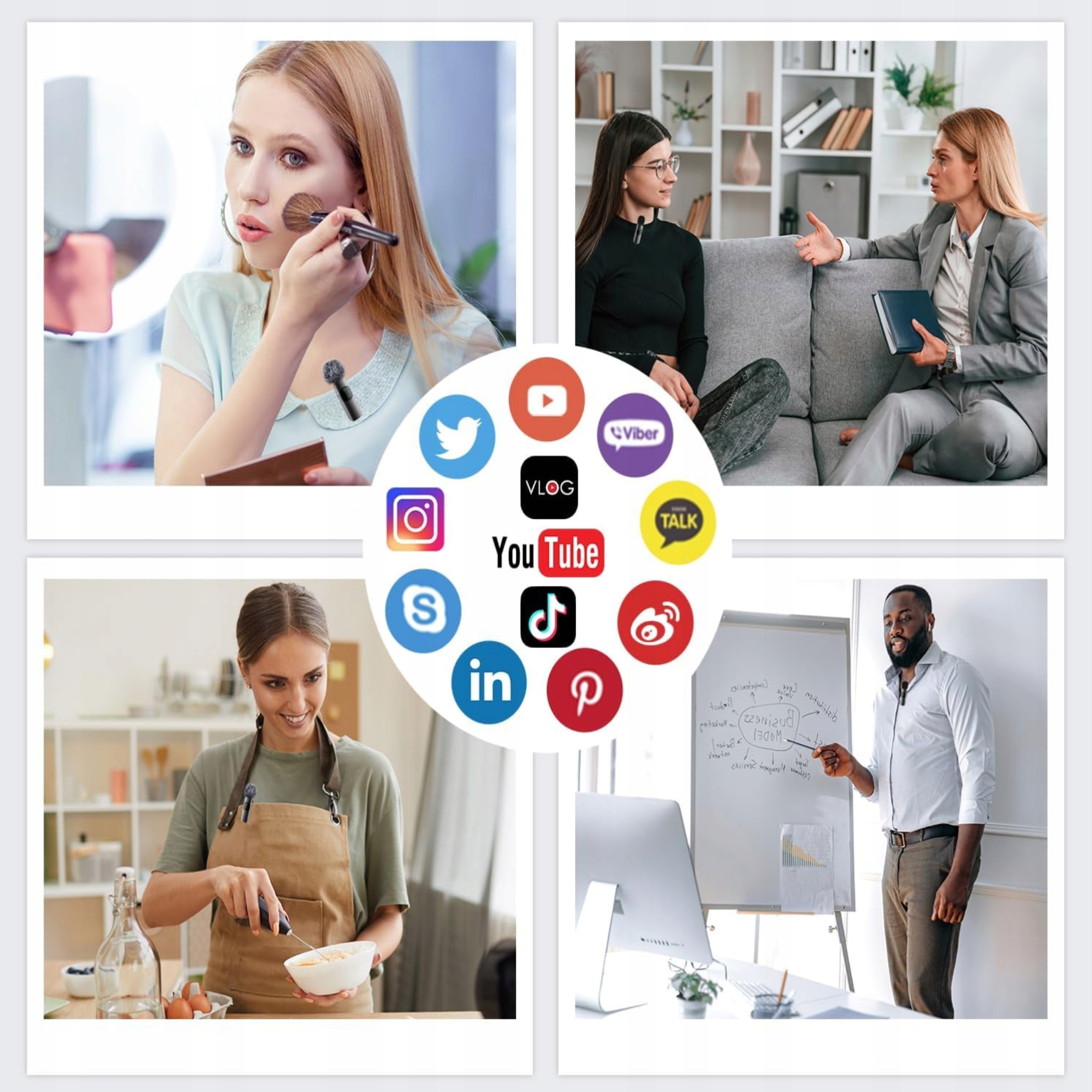 - Profesjonalny dźwięk – vlogi, podcasty, TikTok, wywiady, transmisje.