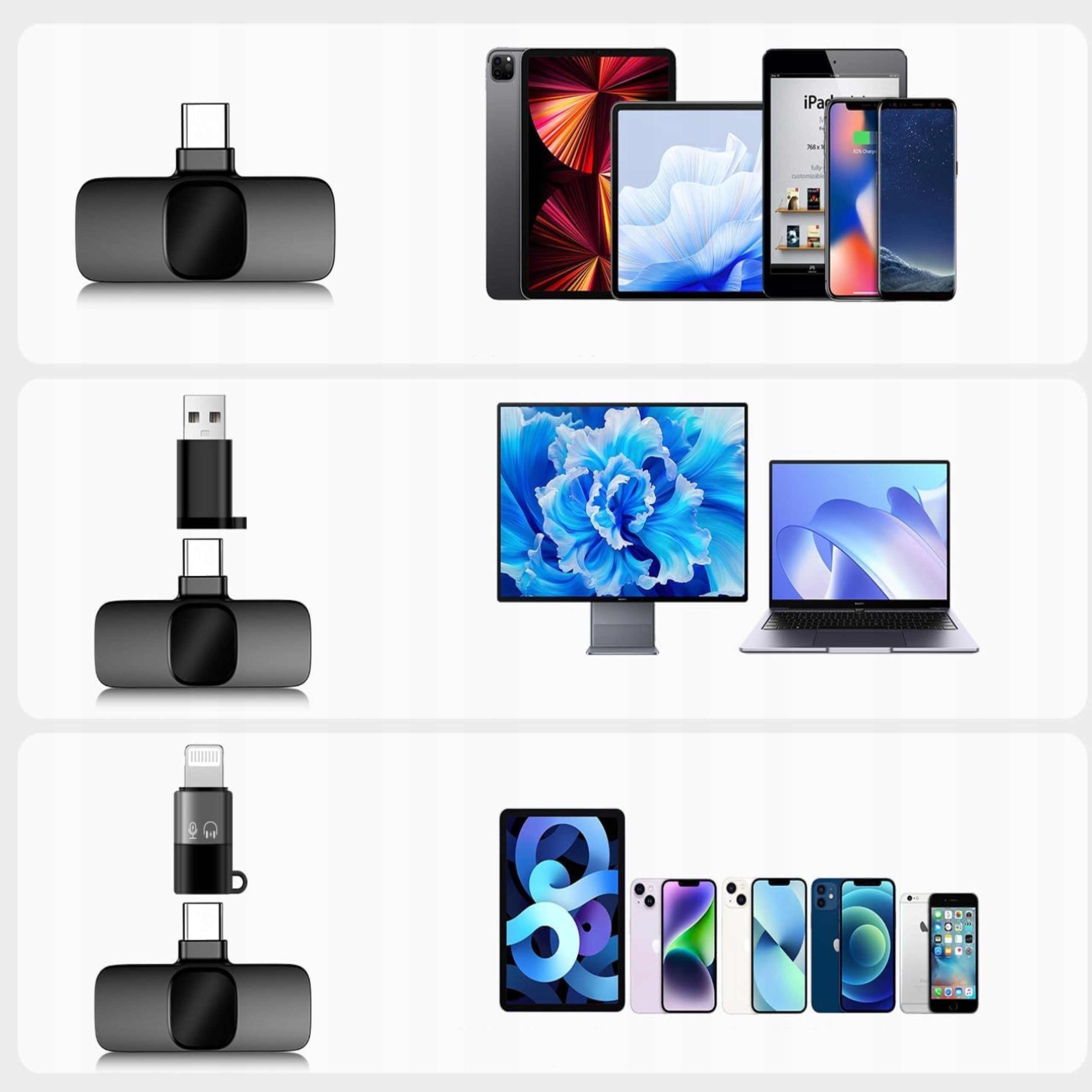 ✅ Bezprzewodowy mikrofon krawatowy 2x + odbiornik + adapter iPhone + USB-C + USB + ETUI ŁADUJĄCE