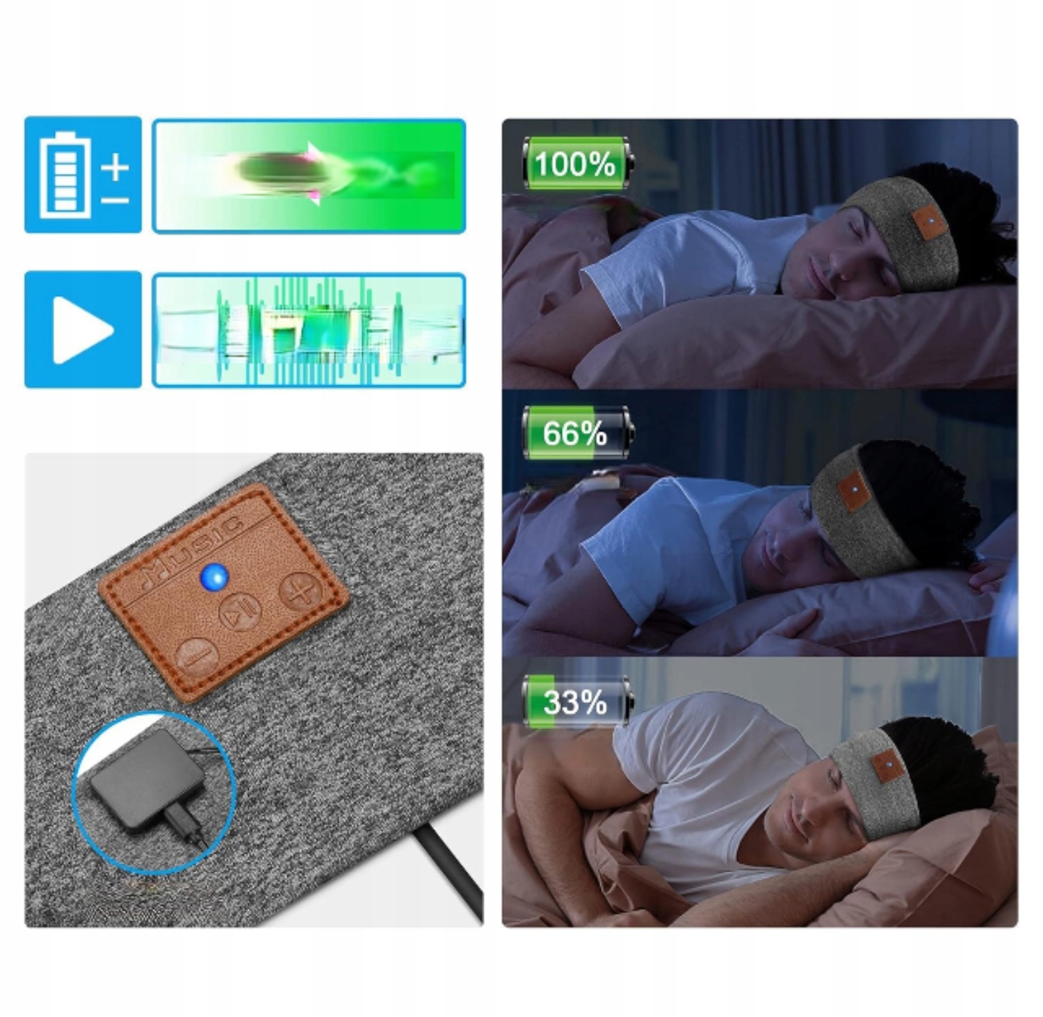 Nasz produkt to wszystkie trzy funkcje jednocześnie. Miękka i wygodna opaska ochroni uszy przed wiatrem i zimnem. Podłącz ją do urządzenia mobilnego i ciesz się ulubioną muzyką lub podcastem podczas spaceru, treningu, sprzątania, gotowania. Wieczorem załóż opaskę na oczy, a posłuży jako maska do spania. Dzięki relaksującej muzyce szybko zapadniesz w słodki sen.