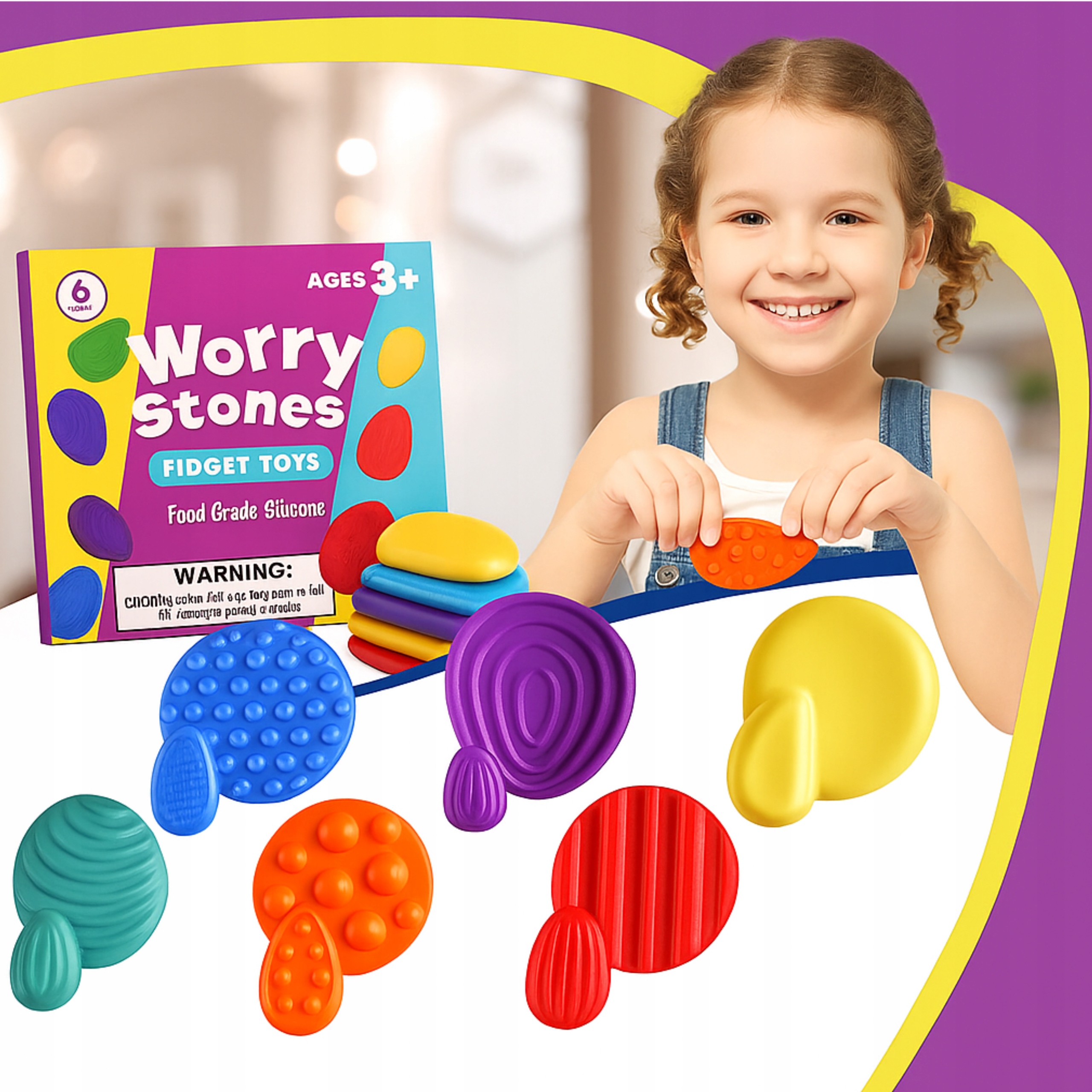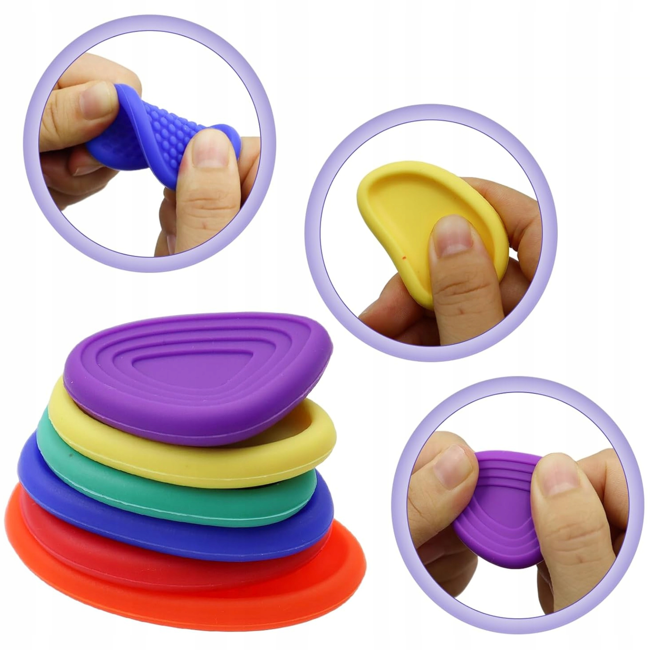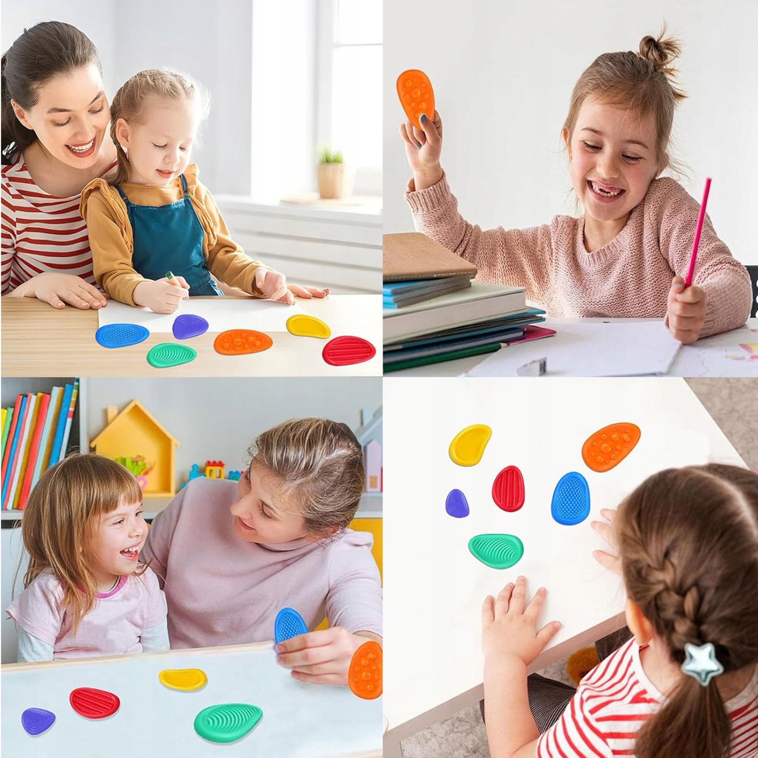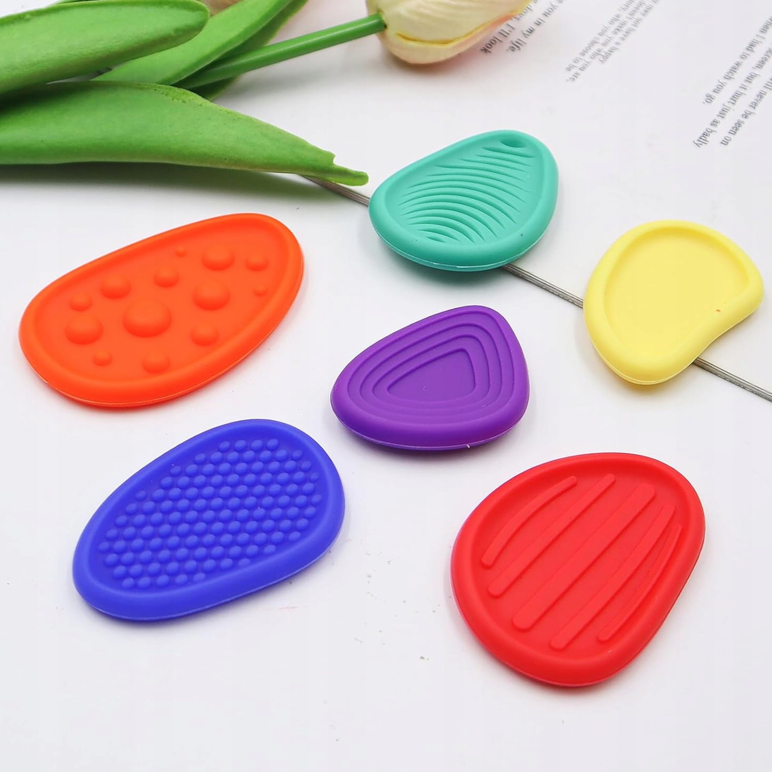Sensoryczne Kamyki Worry Stones to zestaw 6 kolorowych, miękkich kamieni antystresowych o różnych fakturach. Każdy z nich został zaprojektowany tak, aby stymulować zmysły dotyku, wspierać rozwój motoryki małej oraz pomagać w redukcji stresu i napięcia.