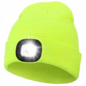 CZAPKA ZIMOWA MĘSKA DAMSKA CIEPŁA BEANIE Z LATARKĄ CZOŁOWA LED USB ŻÓŁTA